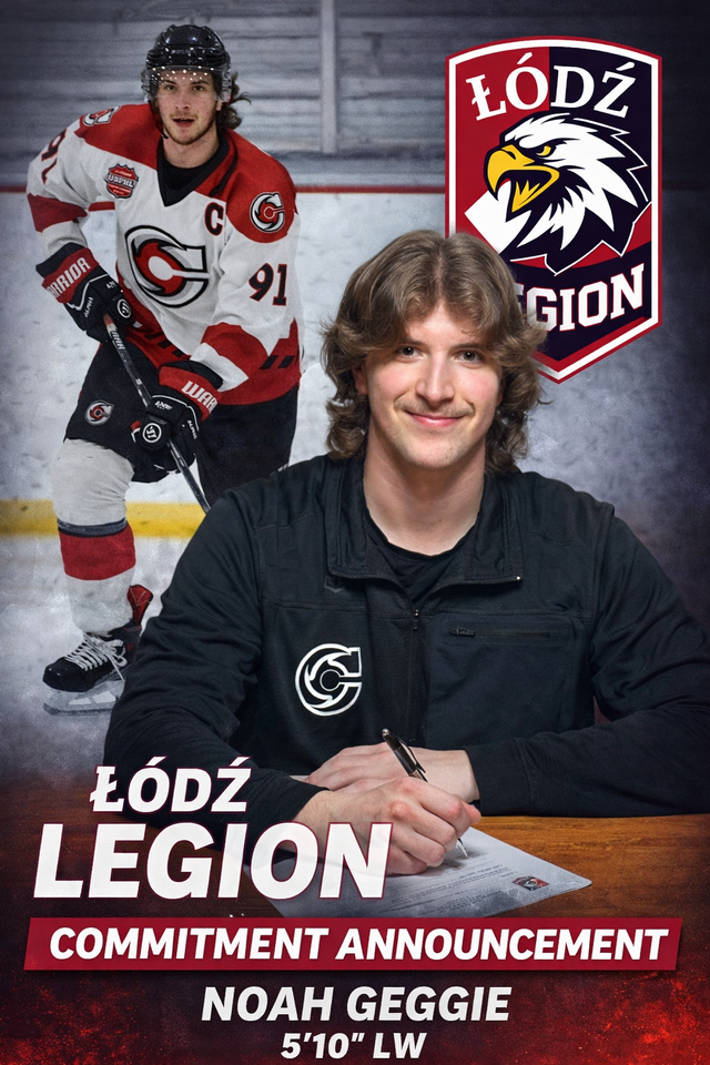 The addition of Noah Geggie highlights the continued growth and ambition of the Łódź Legion as they strengthen their roster within the EUCHL.